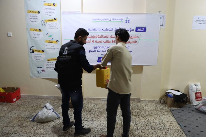 في إطار سعيها الدؤوب لدعم الطلاب والطالبات المحتاجين، نفذت مؤسسة أفق للتعليم والتنمية اليوم “الدورة الرابعة” من مشروع السلل الغذائية، والذي يستهدف 36 طالباً من طلاب العُزب الطلابية حيث يسكن فيها طلاب من محافظتي حجة وتعز.